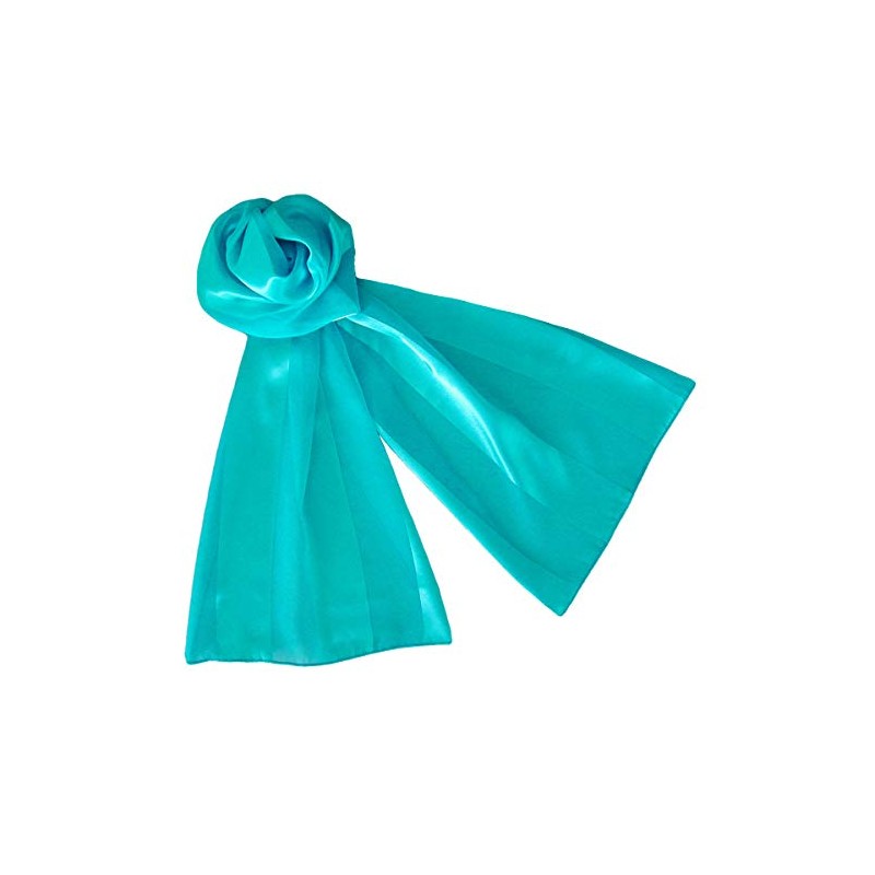 Evening Elegance Long Solid Satin Chiffon Lightweight Silky Scarf Wrap 35+ Colors - Turquoise