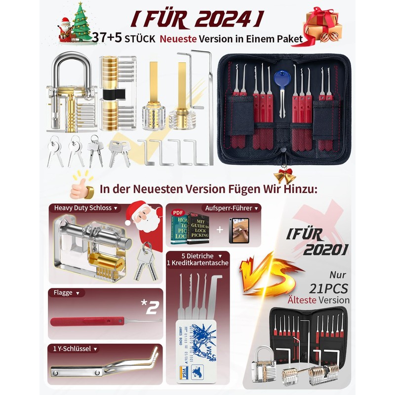 Eventronic 37 + 5 Pieces Lock Picking Set, [2024 Latest Pioneer Edition & New Unlocking Experience] Lock Pick Set with 5 Transparent Locks, Manual for Beginners & Professionals Locksmiths