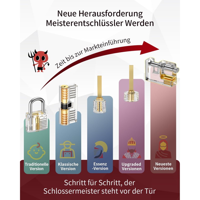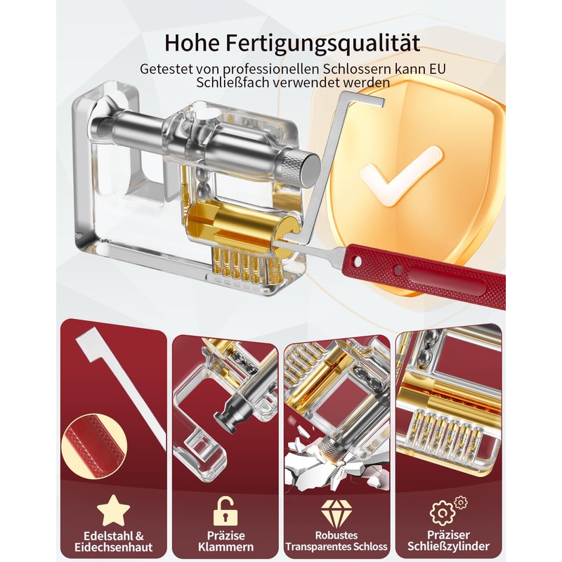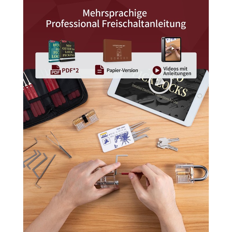 - A journey of discovery in lock picking: the lock picking set offers 5 transparent locks, including the new, improved padlock, with which you can learn the principles of lock picking through practice. The clear locks are designed to gradually improve your lock picking skills and become a true lock picking expert.