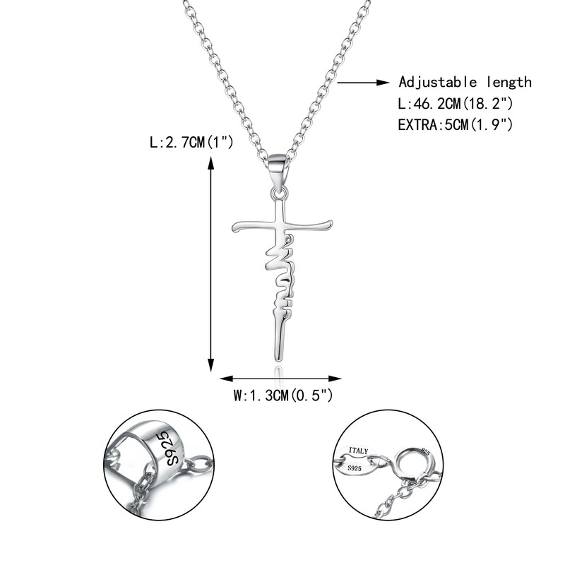 - Cross Necklace Chain Length: 46.2cm(18.2")-51.2cm(20.1"), Pendant Size: 2.7cm(1")by1.3cm(0.5"), Weight: 2.3g.