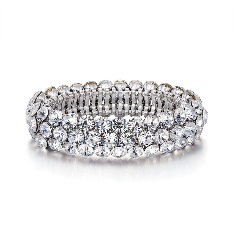 EVER FAITH Bridal Bracelet for Wedding Sparkling Crystal Rhinestone Stretch Bracelet for Women Girls Clear, Crystal, Crystal