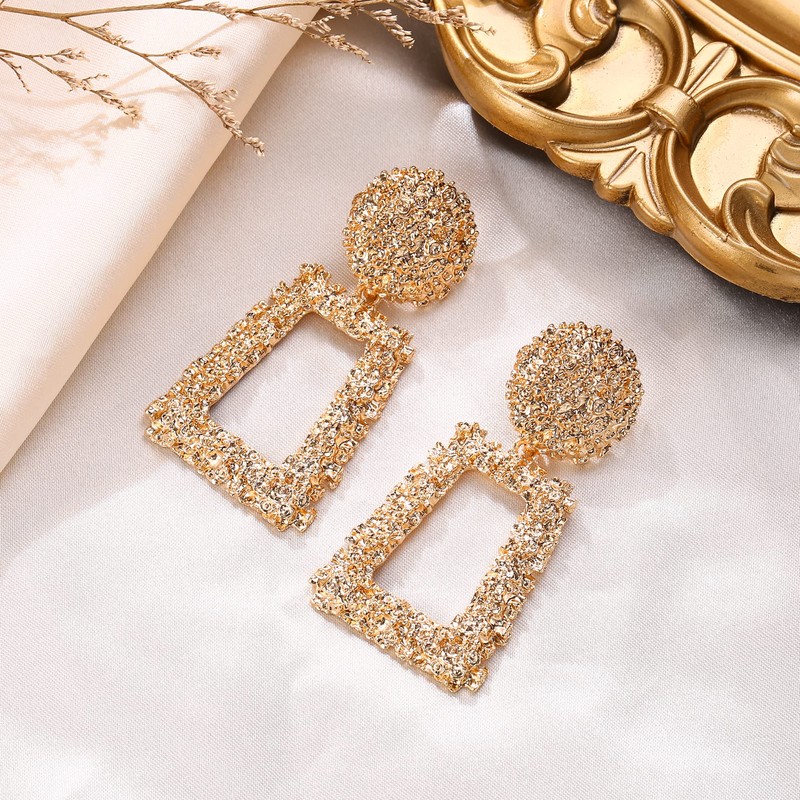 EVER FAITH Golden Color Statement Earrings for Women, Large Square Geometric Rectangle Drop Dangle Earrings