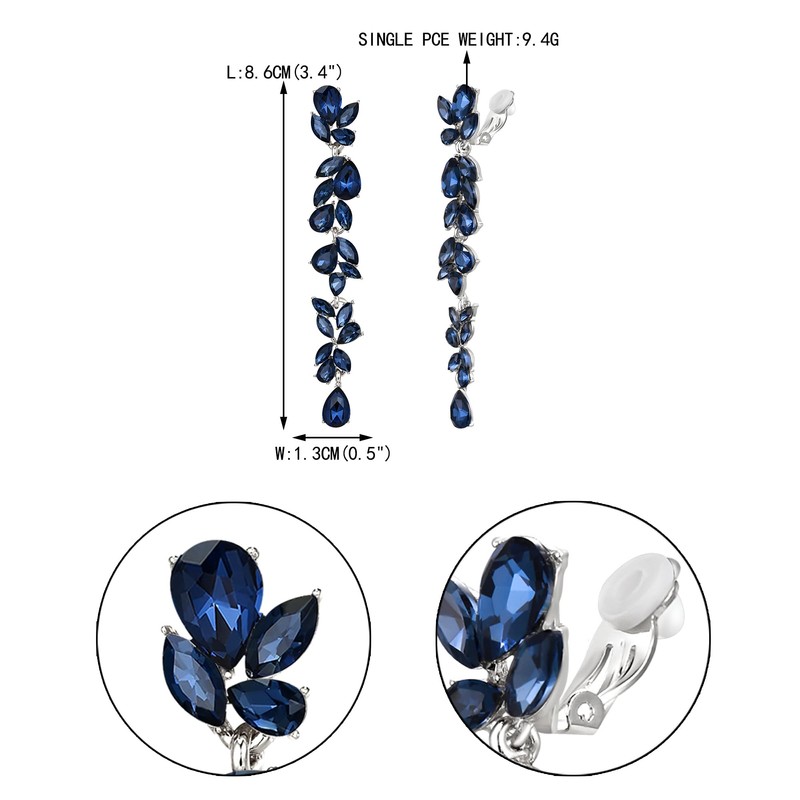 - Wedding Clip-On Earrings Length: 8.6cm(3.4"), Wigth: 1.3cm(0.5"), Total Weight: 18.7g.