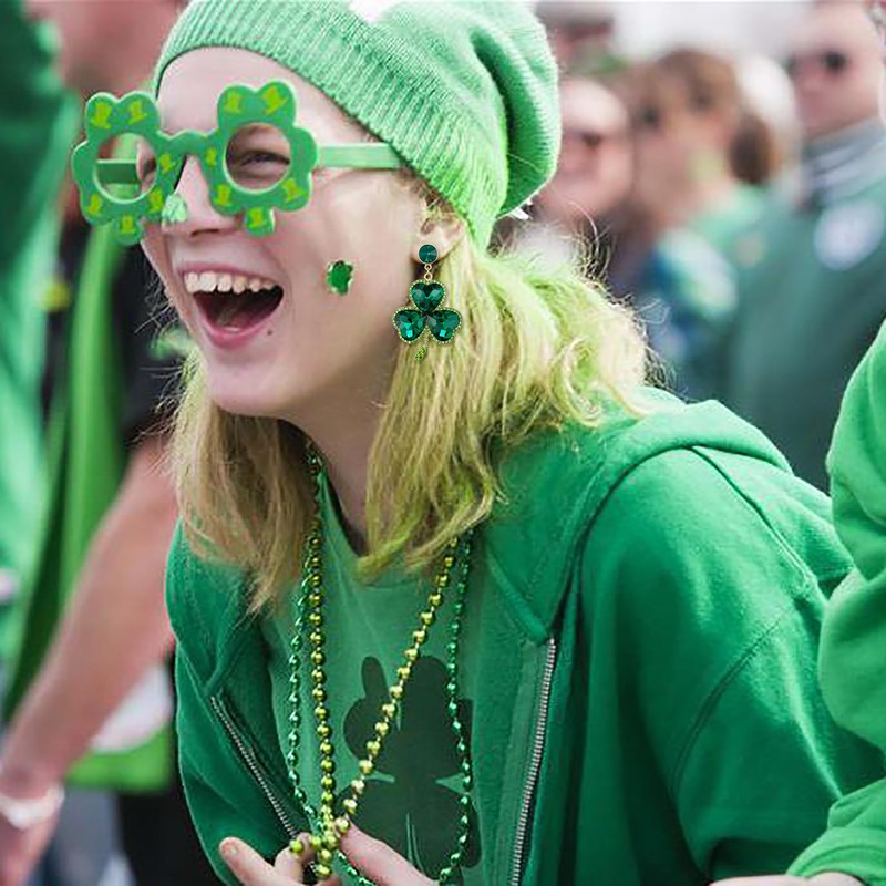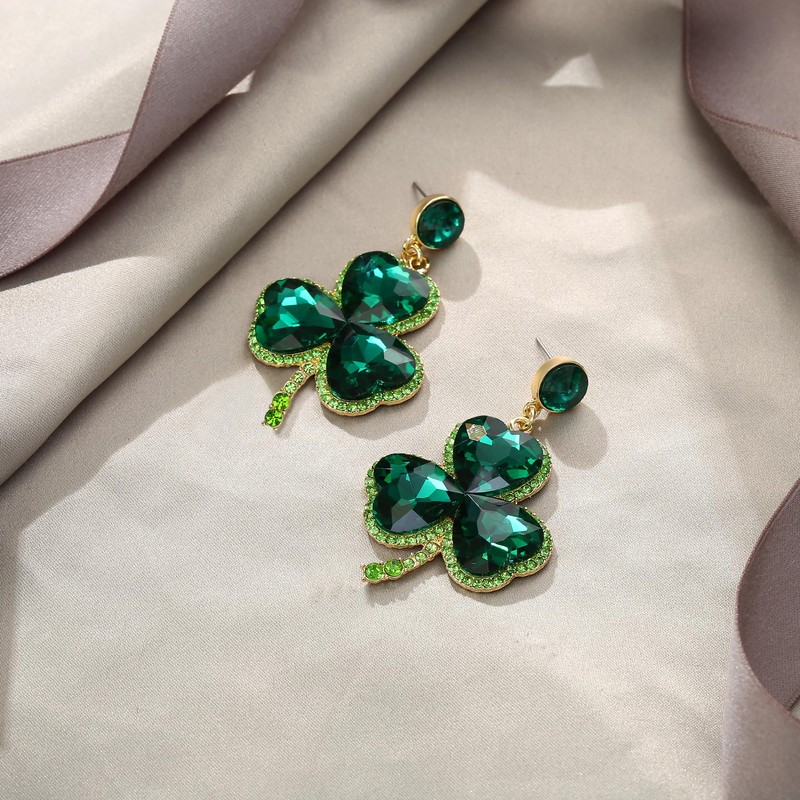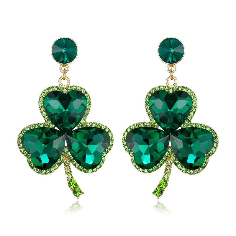 - These lucky clover earrings are made of sparkling heart-shaped crystals. Green Lucky Shamrock is symbolized happiness, health, peace, love and happiness. When you are going to celebrate St. Patrick's Day, these lucky clover statement earrings are perfect accessories that can express your Irish pride.