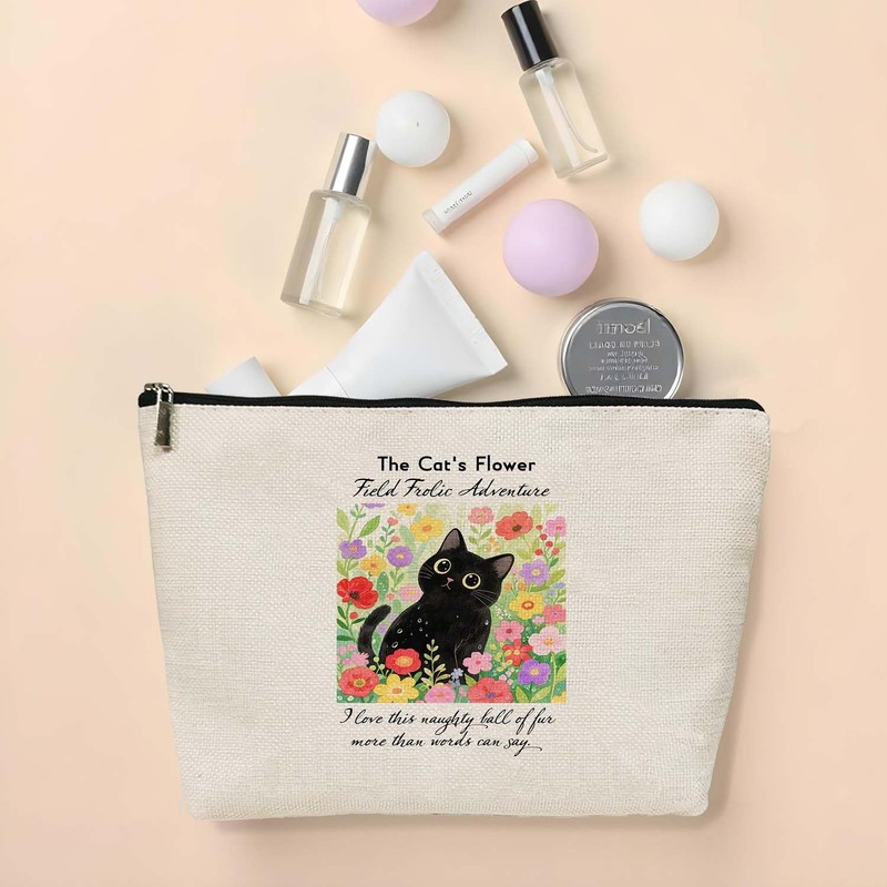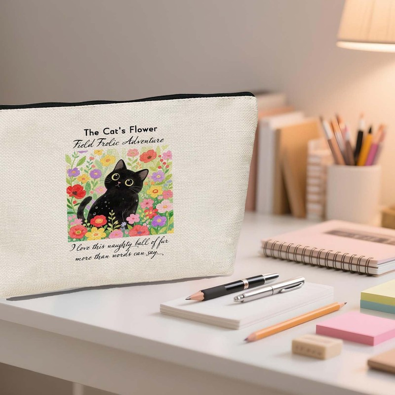 - Stylish Design:Features an adorable illustration of a black cat frolicking in a colorful flower field, paired with the charming phrase “I love this naughty ball of fur more than words can say”. The cute and artistic design adds a whimsical, heartwarming touch to your beauty routine, standing out as a unique accessory.