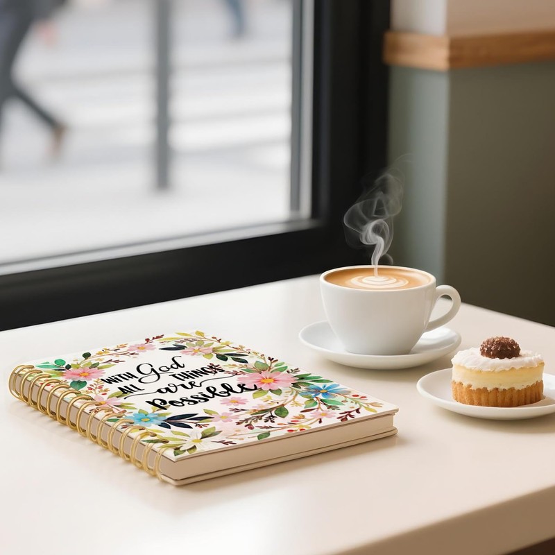 - Uplifting Faith - Based Message:Features the inspiring phrase “With God All Things Are Possible” surrounded by delicate watercolor florals—a daily reminder of hope and resilience for believers, scripture reflections, or gratitude writing.