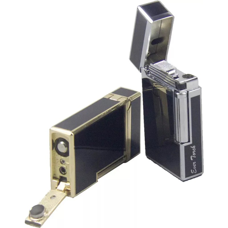 Ever Tech Flint Wheel Refillable Butane Flame Adjustable Torch Lighter W/ Cigar Punch Gift - Silver