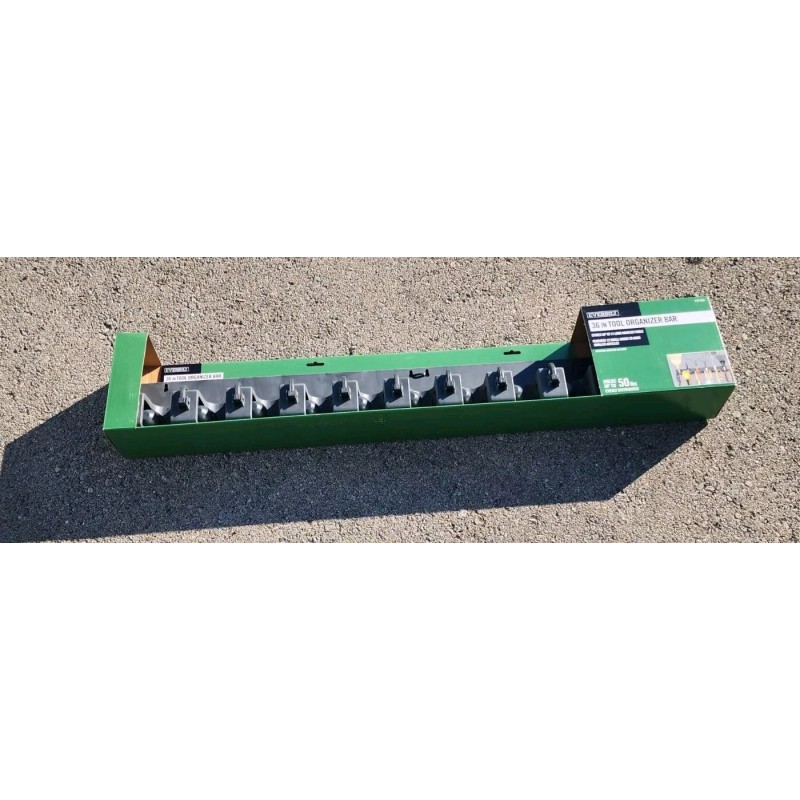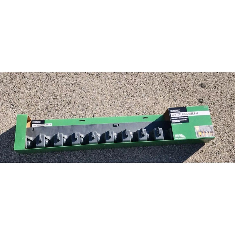 Elevate your tool storage game with this 36-inch garage garden tool organizer. Designed with an industrial style, this black wall-mounted organizer is perfect for keeping your tools and accessories neatly arranged. The durable plastic material has 12 hooks and can hold 11 handles make it easy to store a variety of items, while the 50lb capacity ensures that you can hang even the heaviest tools.