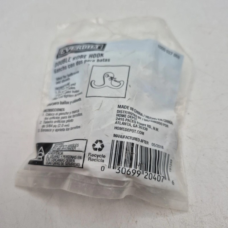 The Everbilt Double Robe Hook 20407 is a wall-mounted bathroom accessory designed to hold two robes or towels securely in place. With a sleek and durable construction from the trusted brand Everbilt, this double robe hook is perfect for adding functionality and style to your bathroom space. Easy to install and ideal for organizing your bathroom items, this hook is a practical and attractive addition to any bathroom.