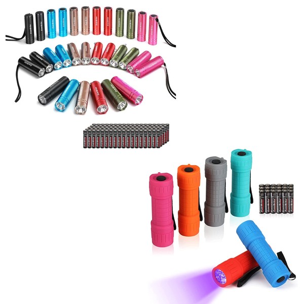 EverBrite 30-Pack Mini Flashlight Set and 6-Pack Black Light Flashlight, with Extra 108 Batteries
