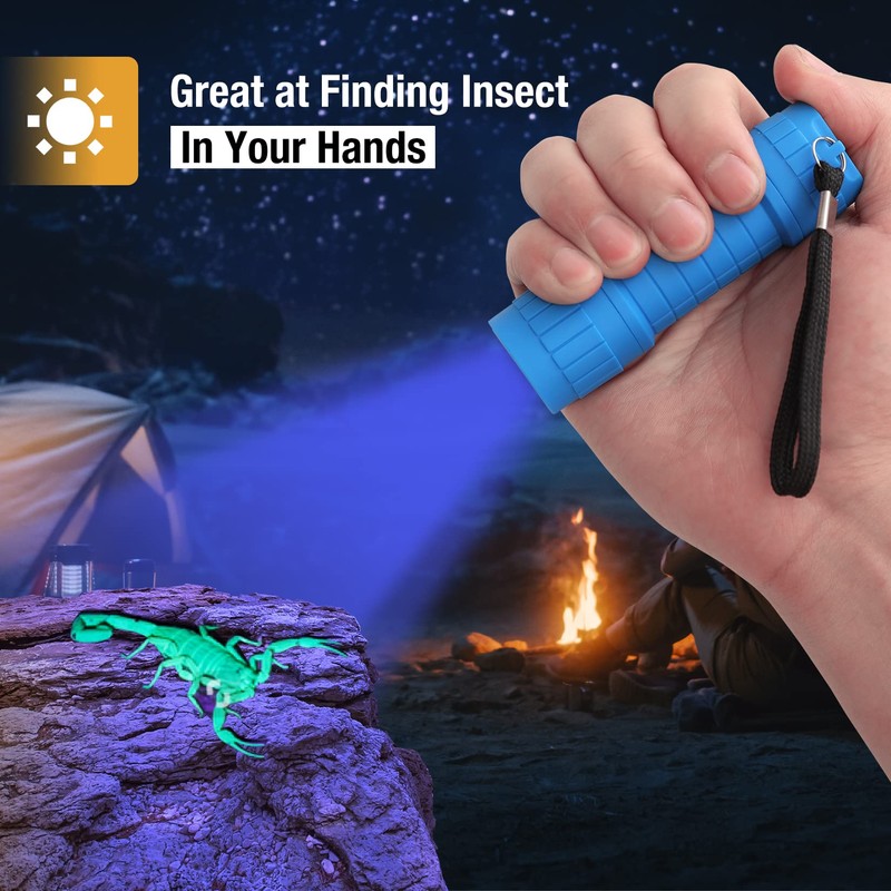 - Package 2: EverBrite 6-Pack Black Light Flashlight-This small UV flashlight includes 6-pack and 18 AAA batteries, and a lanyard for a safely secure hold in case of an accidental fall. Simple ON/OFF one-button operation, convenient for one-hand control. 6 assorted colors led flashlight: red, gray, blue, green, pink and orange.