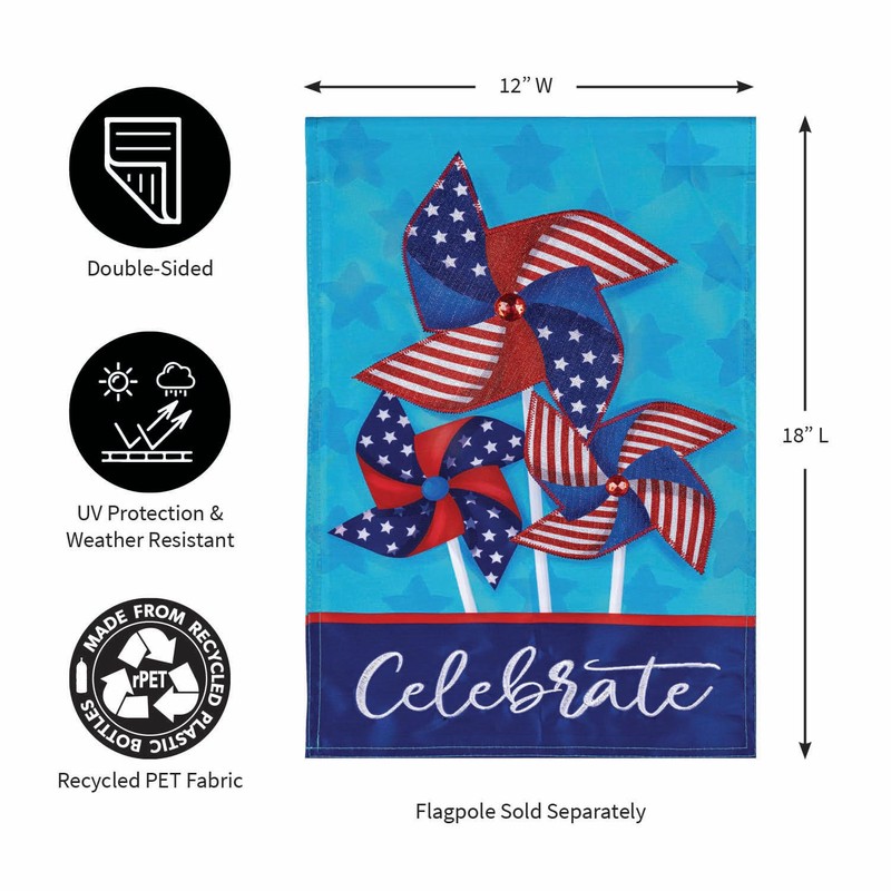 Evergreen Flag Patriotic Garden Flag 12x18 Double Sided, Patriotic House Flags For Outside, Small American Flag for Yard Porch Garden (Pinwheel)