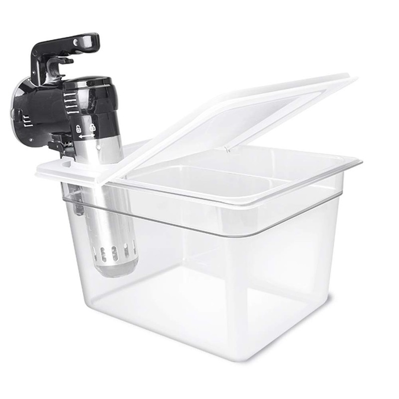 - Sous Vide Container Bundle - A must have bundle of 12 quart sous vide container and a universal collasible hinged lid. Lid is with cutout at corner and compatible with Anova 800W 900W 1000W, Anova Nano, Anova AN500-US00, Joule, Wancle and Instant Pot sous vide cookers