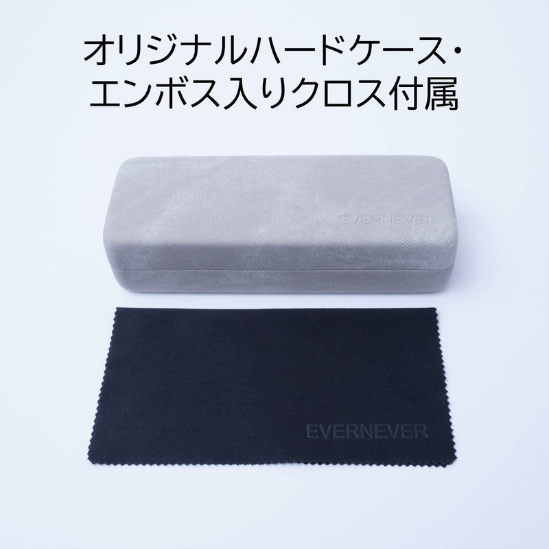 - 【ハードケース&クロス】EVERNEVERオリジナルのハードケースに入れてお届けします。ちょうどよいサイズ感と品の良いデザインを目指し、試作を繰り返し製作した「シンプルだけどこだわりの詰まった」アイウエアケースです。EVERNEVERエンボス入りのクロス(メガネ拭き)が付属します。