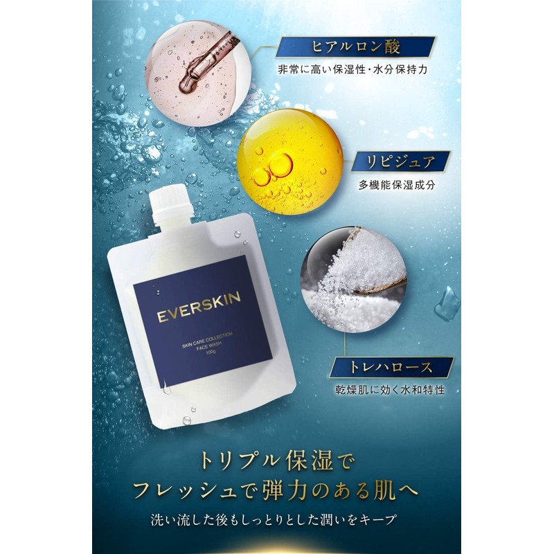EVERSKIN Men's Dense Foam Facial Cleanser, Hyaluronic Acid Blend, Moisturizing, Acne Care, Pore Care, Rough Skin, Sebum Shine Free, Additive-Free Formulation, Made in Japan,