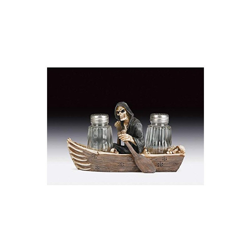 Everspring New Grim Reaper in a Bone Row Boat Salt & Pepper Shakers