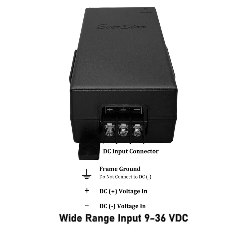 The EverStar iPoE-24W24G2DW is a wide range 9-36VDC input passive (non-IEEE 802.3af compliant) Power Over Ethernet Injector with DC-to-DC convertor built in which provides DC 24V over Ethernet cables. This product is ideal solution in solar, wind power systems, outdoor telecommunication cabinets and vehicle for cost effective and easy installation.