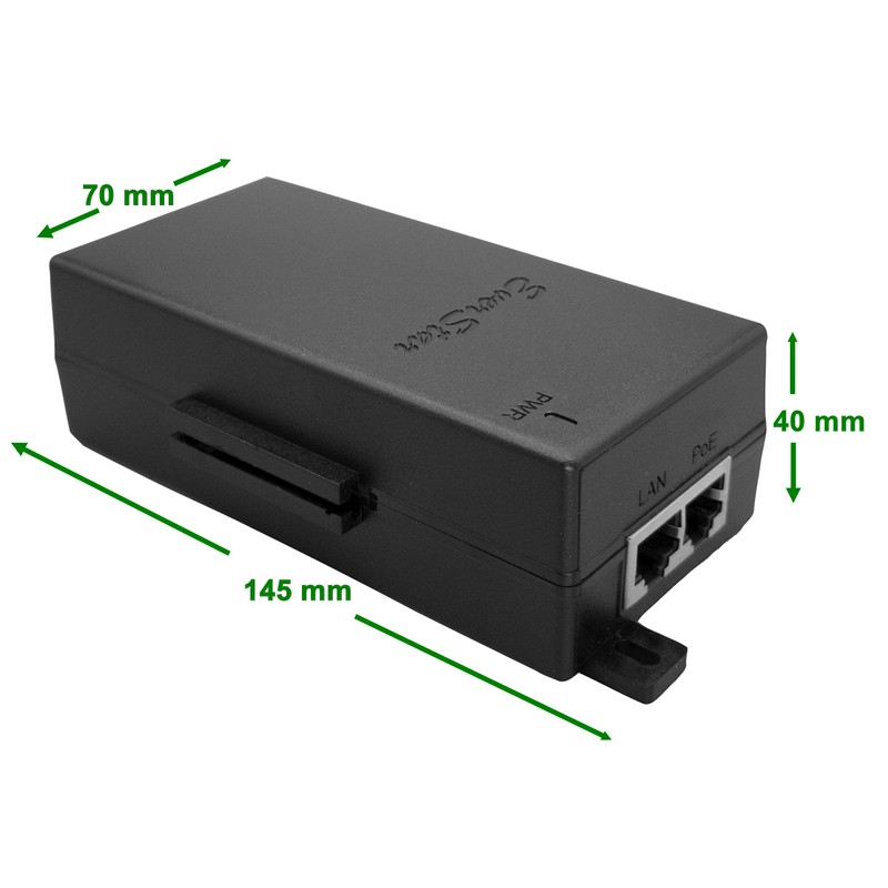 • Integrated Power over Ethernet (PoE) Injector + DC to DC Convertor