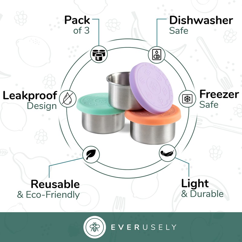- 🍐 Buy Now, Completely Risk Free: These reusable sauce containers are extremely durable, perfectly portable & long lasting. The premium food-grade stainless steel won’t rust, & the silicone lids won’t warp or tear. We back our product 100%. Love it, or return it for a full refund