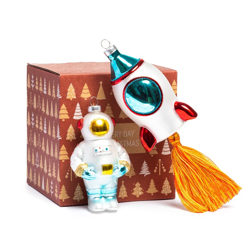 Every Day is Christmas Glass Blown Ornaments Cute Hand Made Figurines Tree Decoration, Rocket