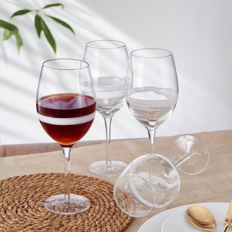 - DISTINCT DESIGN ELEMENT: each glass in the Organic Band stemware collection features a unique, solid color band