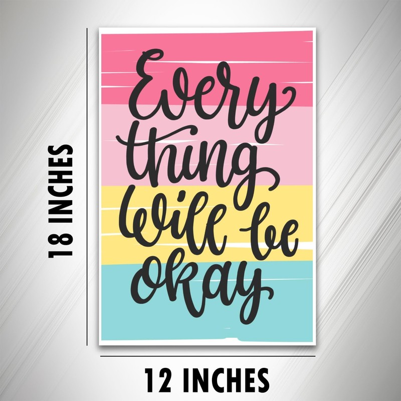 Everything Will Be Okay Poster - 12 x 18 Inch Unframed - Inspirational Wall Art Decor - Premium 100lb Gloss Poster - Rolled Poster - For Home, Classroom, Office, Dorm - Printed in USA - AAP0163