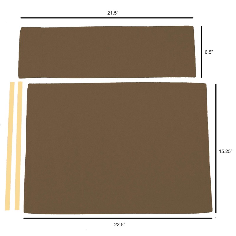 - Dimensions (edge to edge): Seat measures 22 1/2" Wide by 15 1/4" Depth; Back measures 21 1/2" Wide by 6 1/2" High. These are FLAT STICK type cover sets.