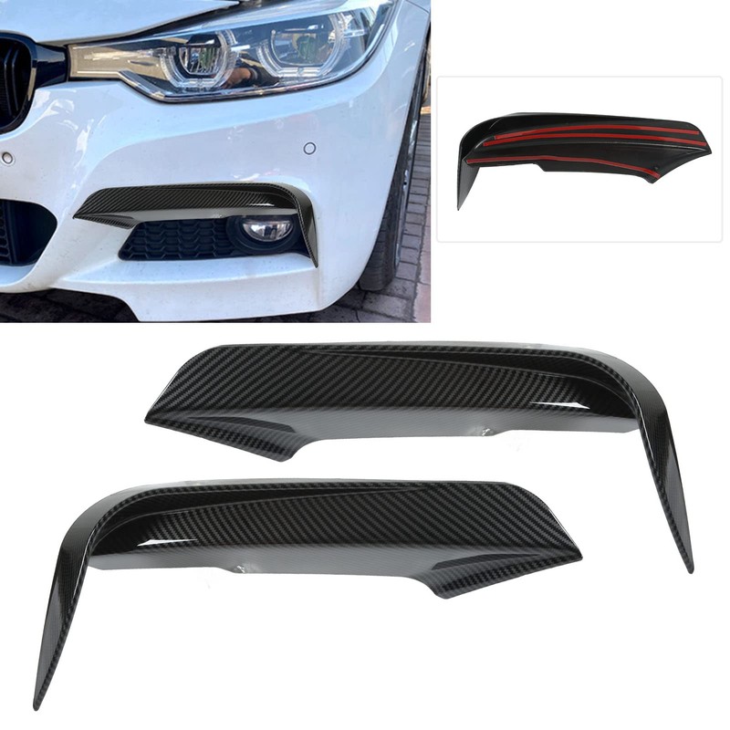 EVGATSAUTO Front Bumper Spoiler, 2pcs Front Bumper Vent Canard Splitter Left Right ABS Wind Knife Replacement for 3 Series F30 F31 F3 320i 328i M Sport(Carbon Fiber)