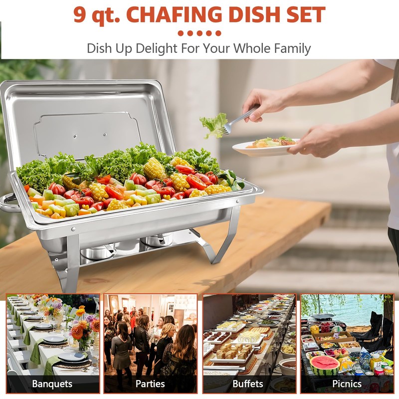 - 9QT Large Capacity: Each chafing dishes for buffet features a generous 9-quart capacity, suitable for medium to large gatherings, Ideal for main courses, sides, and desserts