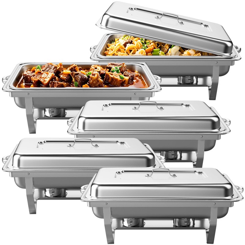 EVGTTI 9QT 5 Pack Chafing Dishes for Buffet, Buffet Servers and Warmers for Parties Food-Grade Stainless Steel, Rolled Edge for Events & Weddings, Indoors & Outdoors