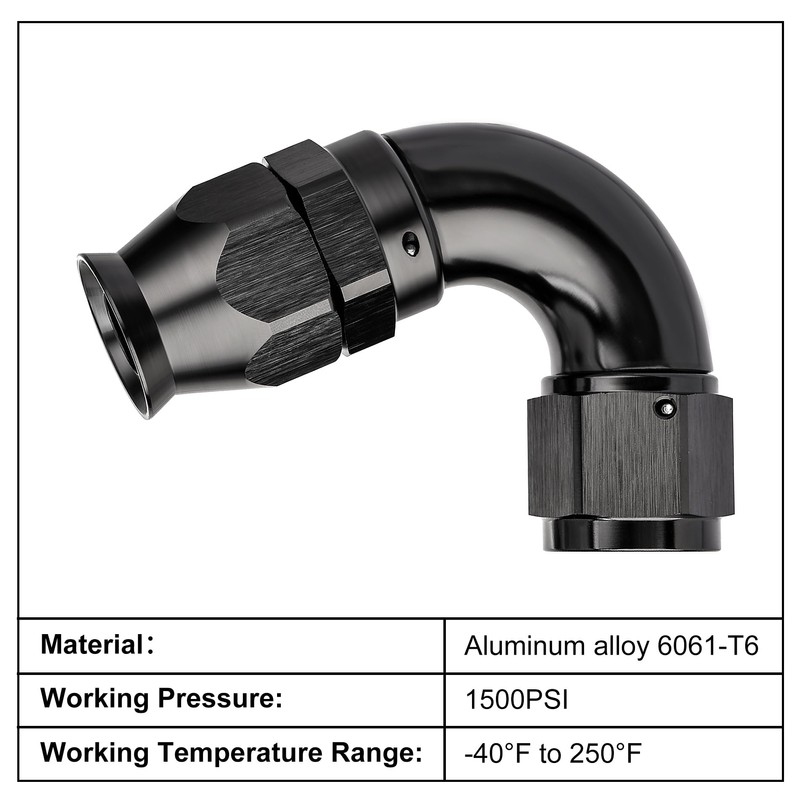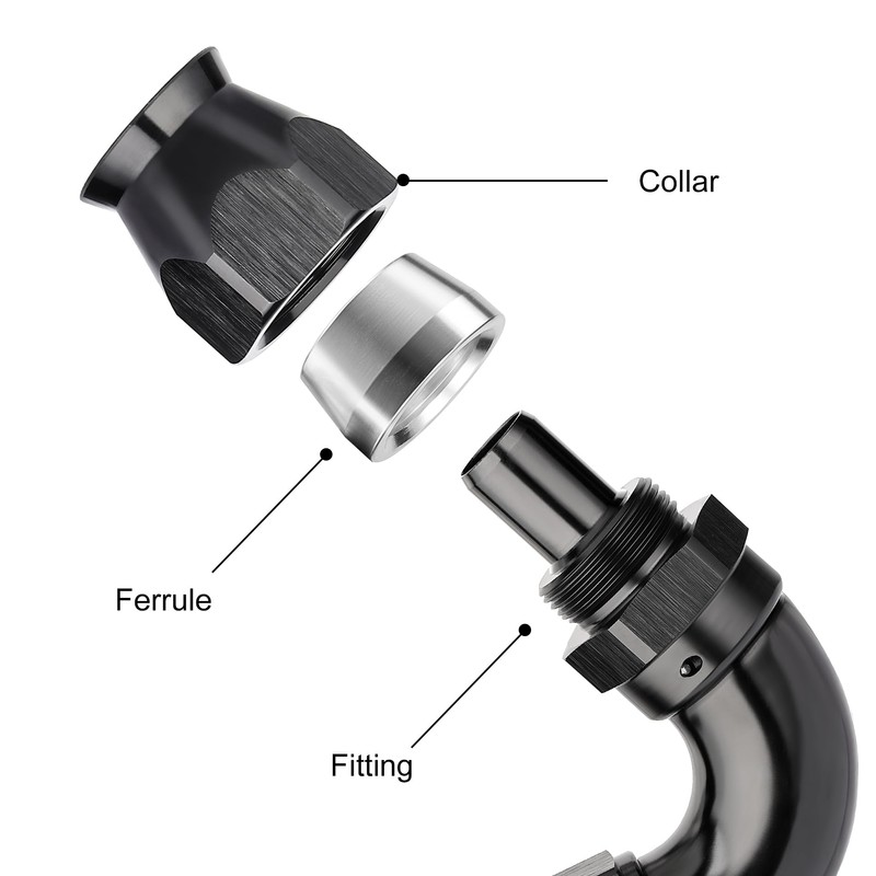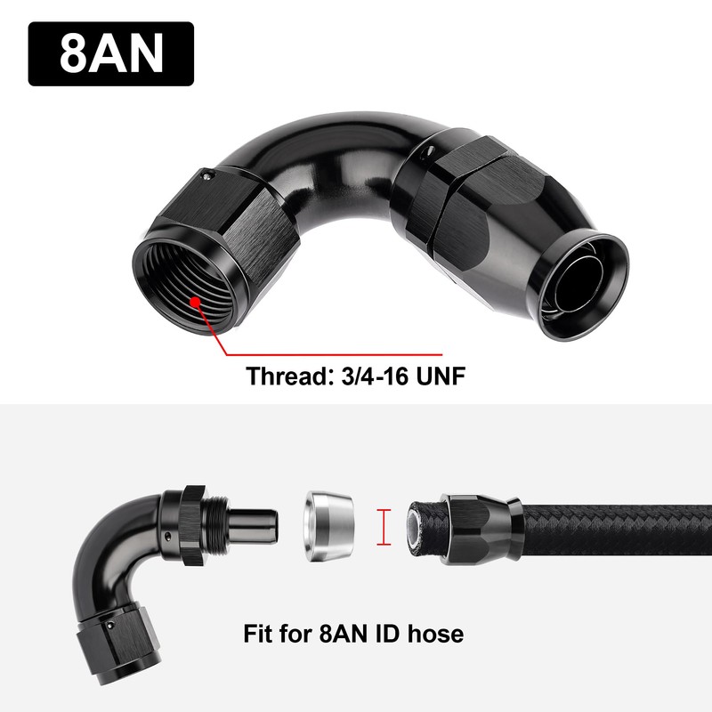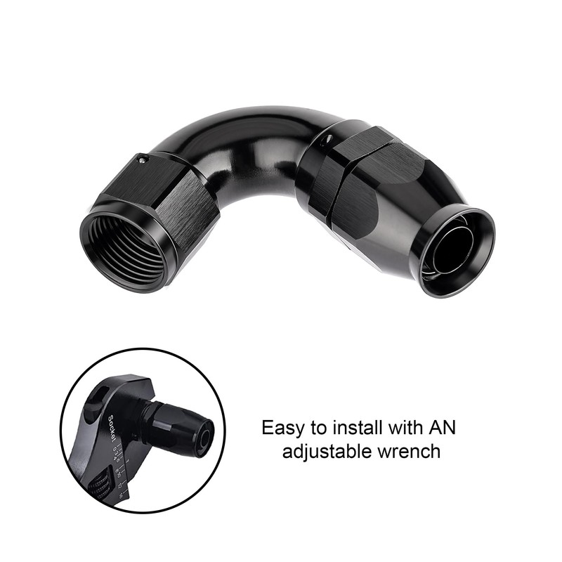 EVIL ENERGY 8AN 120 Degree PTFE One Piece Full Flow End Hose Fitting Aluminum Black