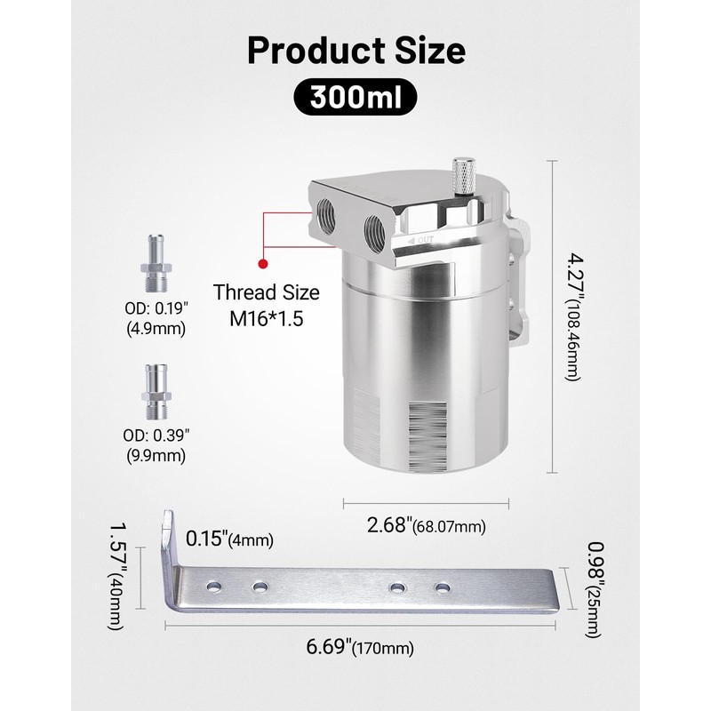EVIL ENERGY Baffled Oil Catch Can,Oil Separator Catch Can 300ml Universal Aluminum Silver