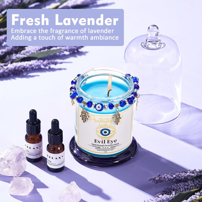 - UNIQUE AND THOUGHTFUL GIFT - This evil eye candle makes an exceptional and thoughtful gift choice. Beyond its cultural significance, it carries positive intentions and symbolizes protection. Gifting this lavender-scented candle shows your care for the recipient's well-being and your desire to bring positivity into their life. It's a unique and meaningful present that embodies both beauty and spiritual significance.