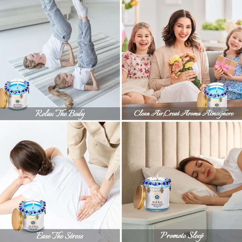 More than just a candle, this Evil Eye Decor holds cultural significance and positive intentions. Believed to ward off negative energy and protect against the "evil eye," it serves as a thoughtful and unique gift choice, expressing your care for the recipient's well-being and your desire to bring positivity into their life.