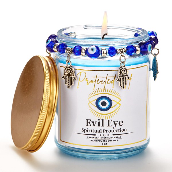 Evil Eye Candle - Evil Eye Decor, Unique Evil Eye Gifts Protection Candle, Healing, Luck, Good Energy Spiritual Protection Candle, Evil Eye Protection Candle, Lavender Scented Candle Gifts