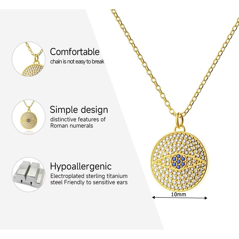 Evil Eye Gold Necklace with Crystal Pendant, 18K Gold Plated Delicate Necklace For Women,Chain Link Design (round evil eyes, gold)