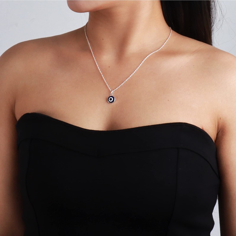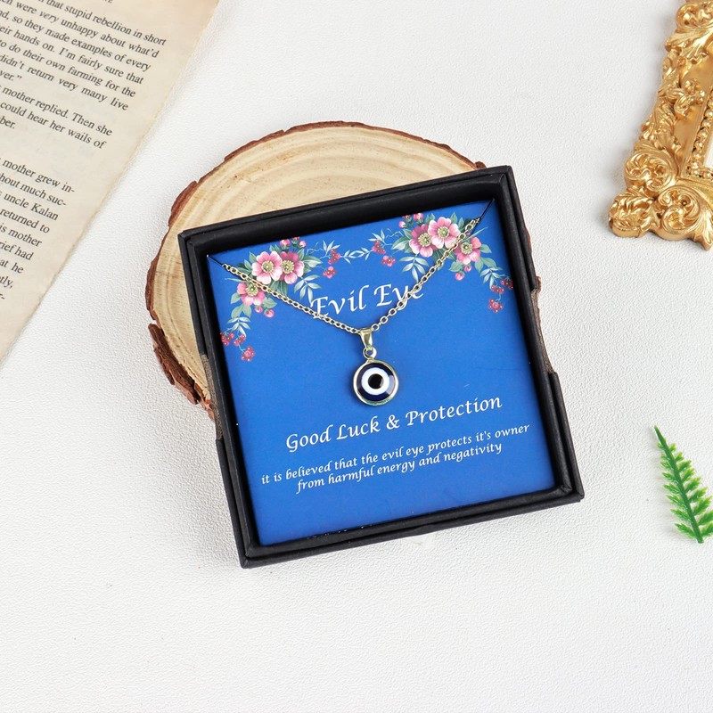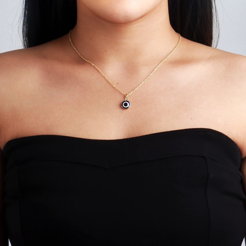 - EVIL EYE NECKLACE:This round evil eye pendant features highly polished finished glass style stones. Evil eye amulets are often carried for good luck. This lovely necklace is perfect for you.