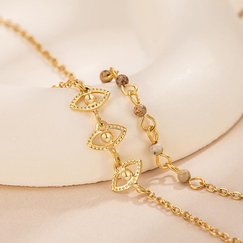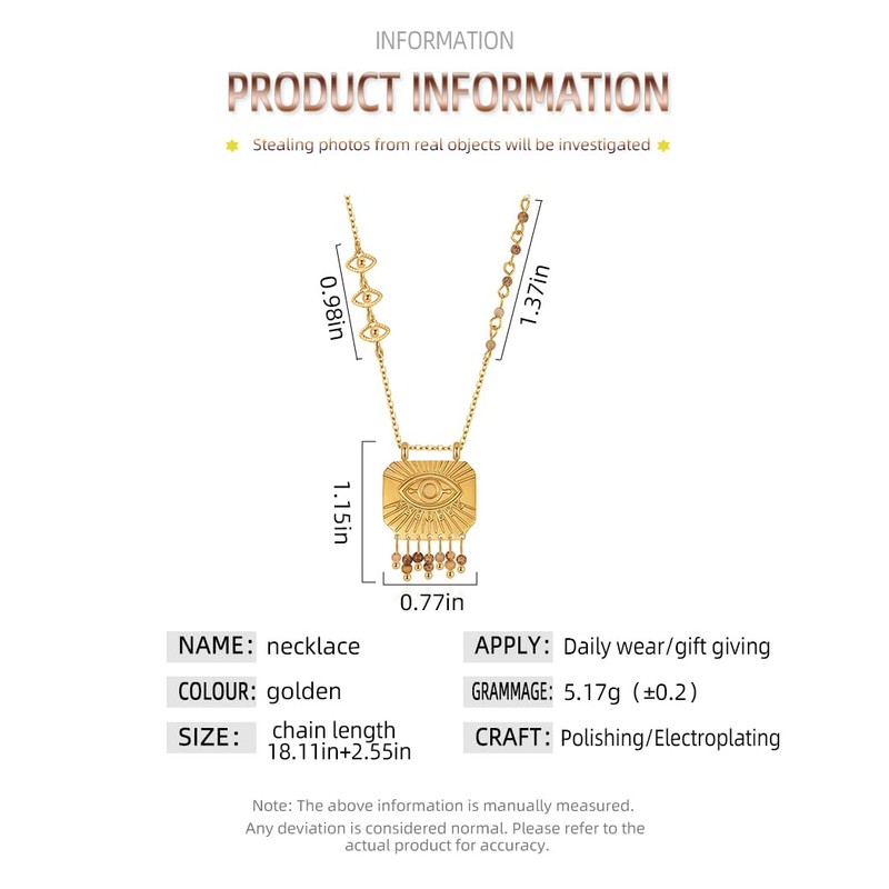 - Striking Design: The large central evil eye charm, with its detailed sun - ray engravings, is a focal point of elegance. Complemented by smaller evil eye charms along the chain and a charming bead tassel, it creates a captivating visual flow that's both trendy and timeless.