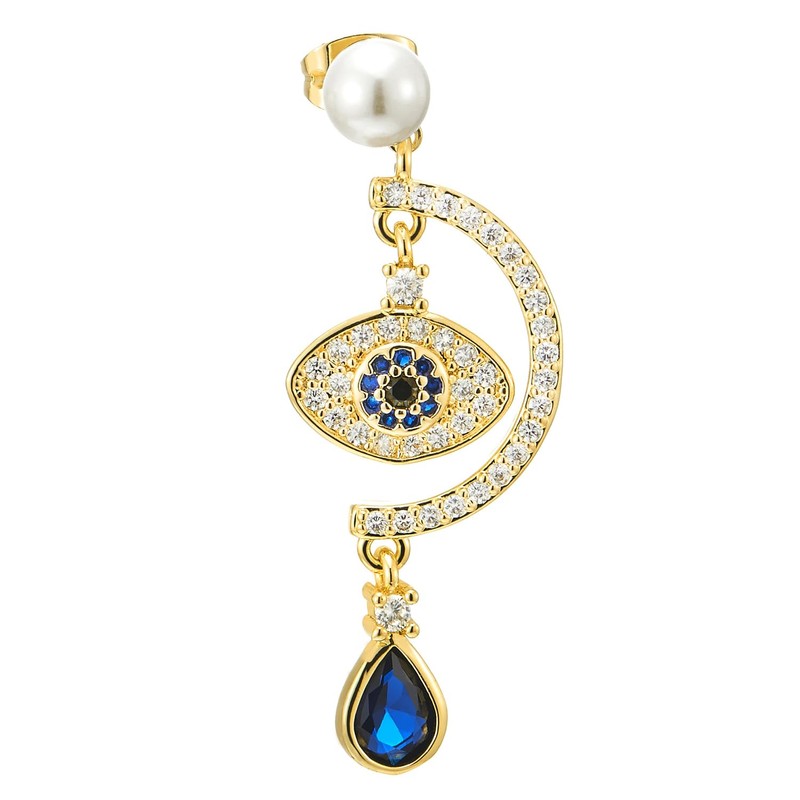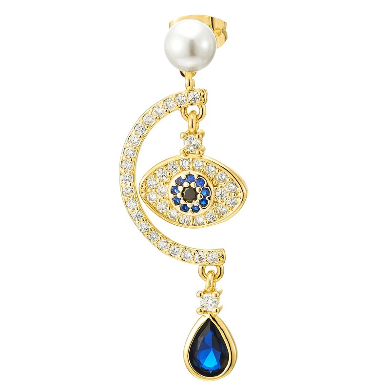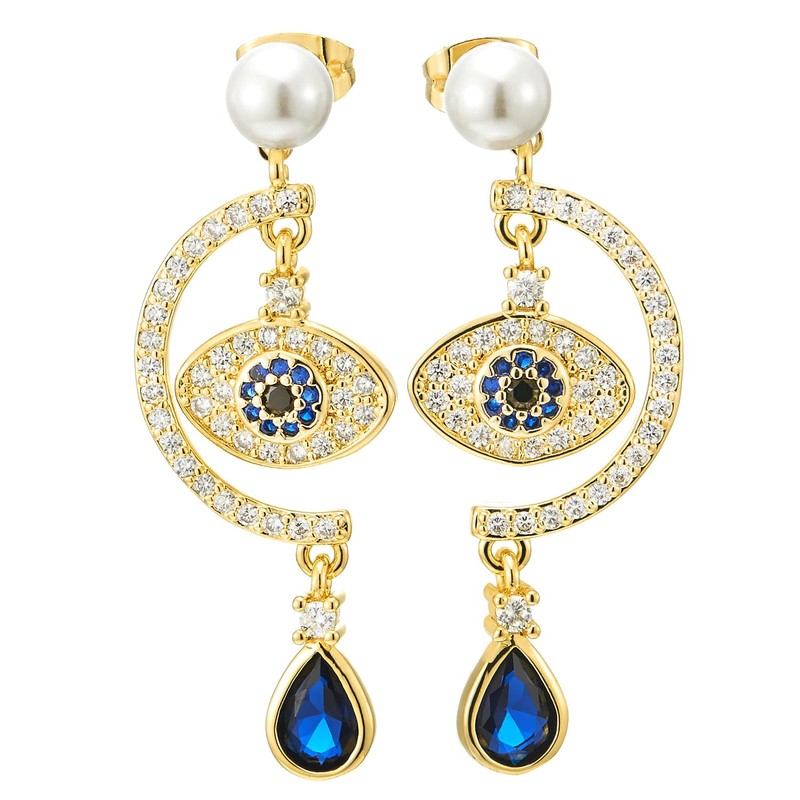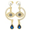Evil Eye Statement Earrings, Sparkling Long Dangle Earrings with Cubic Zirconia, Gold with Pearl, Brass, Zirconia and synthetic pearl