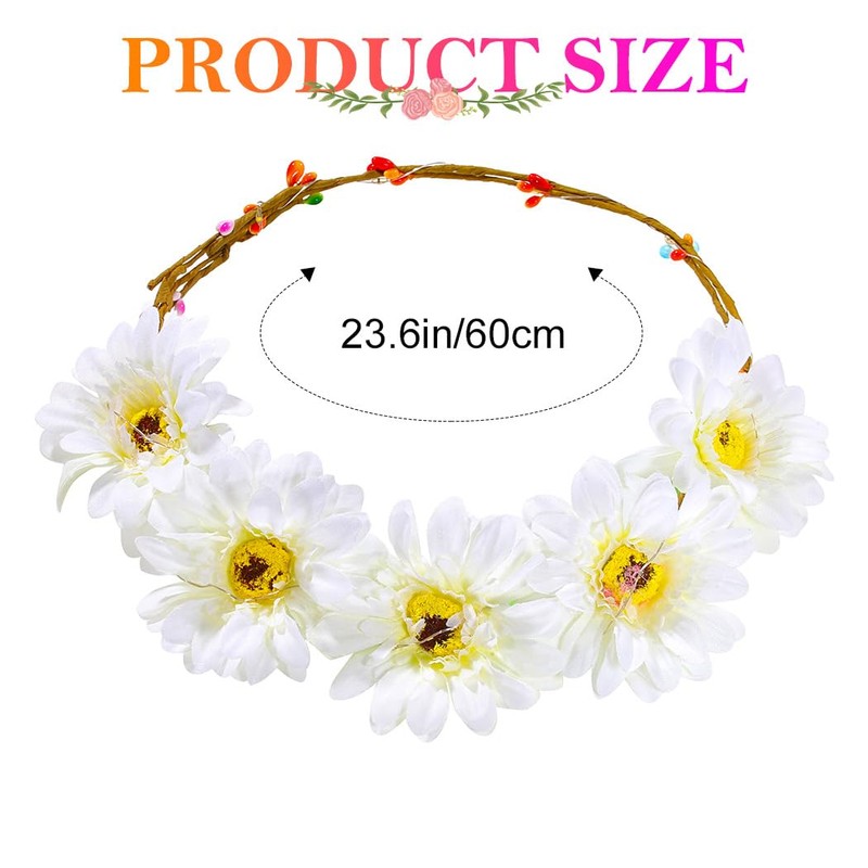 - Bright hair wreath flowers is one size fits most head shapes. Simple, cute, romantic, elegant design that makes you look more charming and eye-catching.