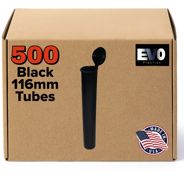 Evo Plastics (500 count) 116mm Black King Size Pop Top Tubes - Plastic Storage