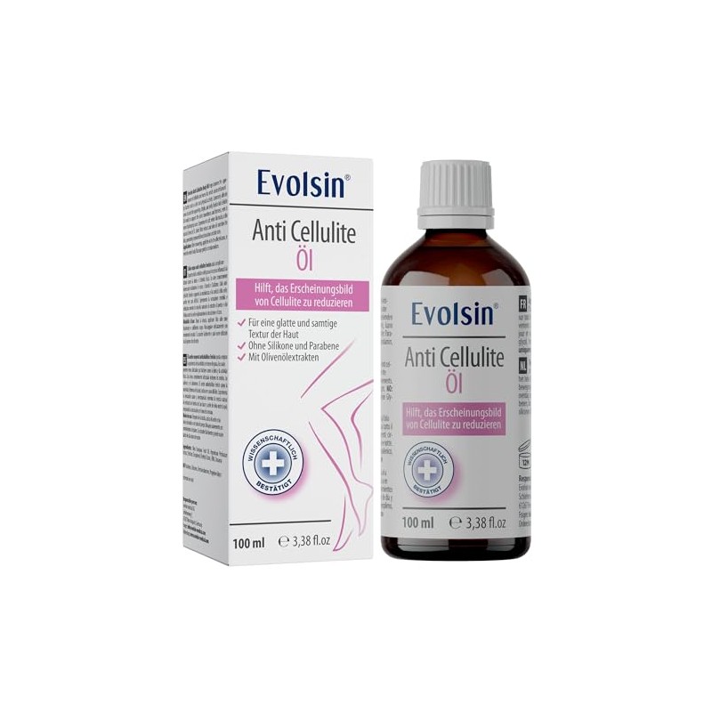 Evolsin® Anti Cellulite Öl für Bauch Beine Po- reduziert Cellulite / Orangenhaut - zu 99% NATÜRLICHe Inhaltsstoffe - Alternative zur Cellulite Creme Gel, 100ml
