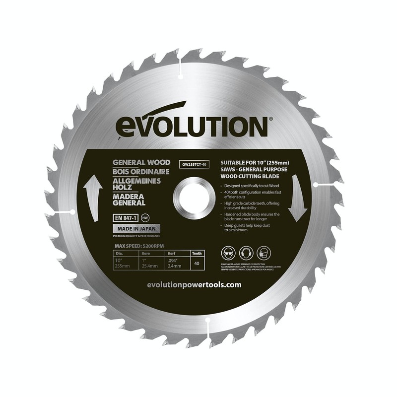 - Designed to deliver smooth, fast and accurate cuts in wood when combined with a Evolution 255mm miter saw or table saw.