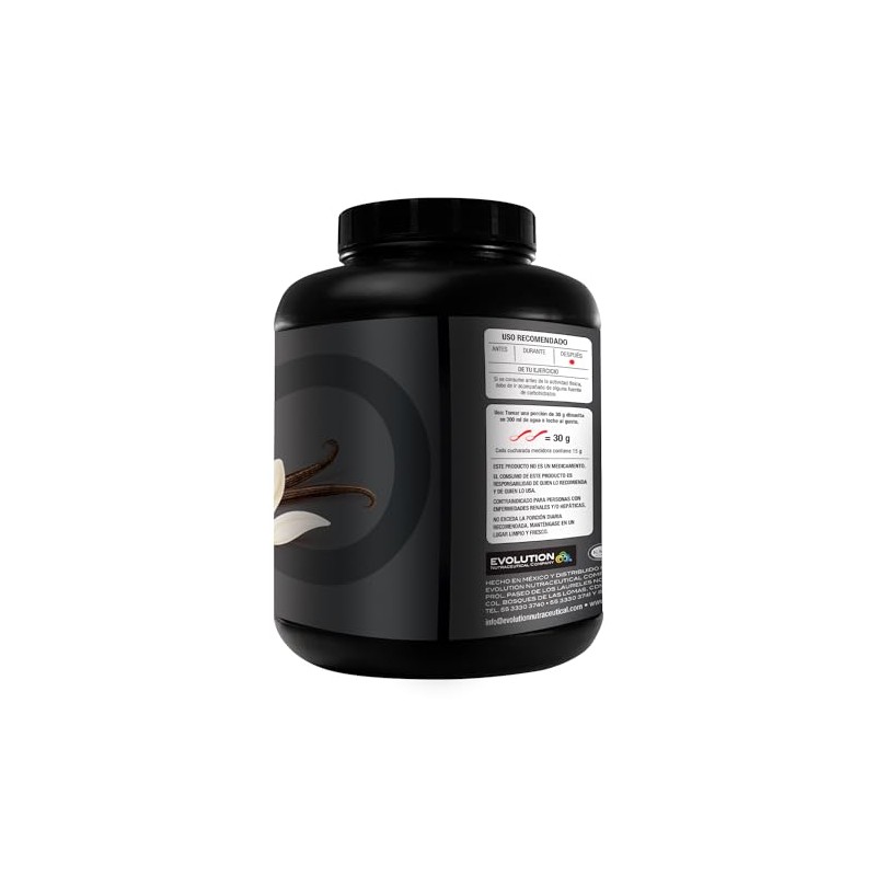 Acerca de este artículo PROTEÍNA DE SUERO DE LECHE. La proteína WP60 sabor vainilla de Evolution, es una mezcla de proteína concentrada y ultrafiltrada de suero de leche. Contiene vitaminas, minerales y todos los aminoácidos, tanto los esenciales como los no esenciales CARACTERÍSTICAS. Fórmula especializada Evolution de proteína 100% concentrada de suero de leche, baja en sodio, con proceso de ultrafiltracion que ayuda a su fácil digestión. Hecha de colorantes y saborizantes de origen natural. No contiene azúcar añadida USO RECOMENDADO. Tomarla diluida en 350 ml de agua o leche, idealmente después de un entrenamiento o realizar ejercicio, ya que ayuda a la recuperación. Brinda 18 g de proteína y 7.5 g de hidratos de carbono por porción CERTIFICACIONES. Contamos con certificaciones nacionales e internacionales. Este producto no es un medicamento. El consumo de este producto es responsabilidad de quien lo recomienda y de quien lo usa. No se recomienda tomarla durante el embarazo y lactancia EVOLUTION. Es una empresa mexicana con más de 10 años de experiencia en el mercado de nutrición deportiva y wellness. Gracias a su determinación, certificaciones, compromiso y visión, se ha posicionado como una de las líneas más completas de suplementos alimenticios en el mercado mexicano