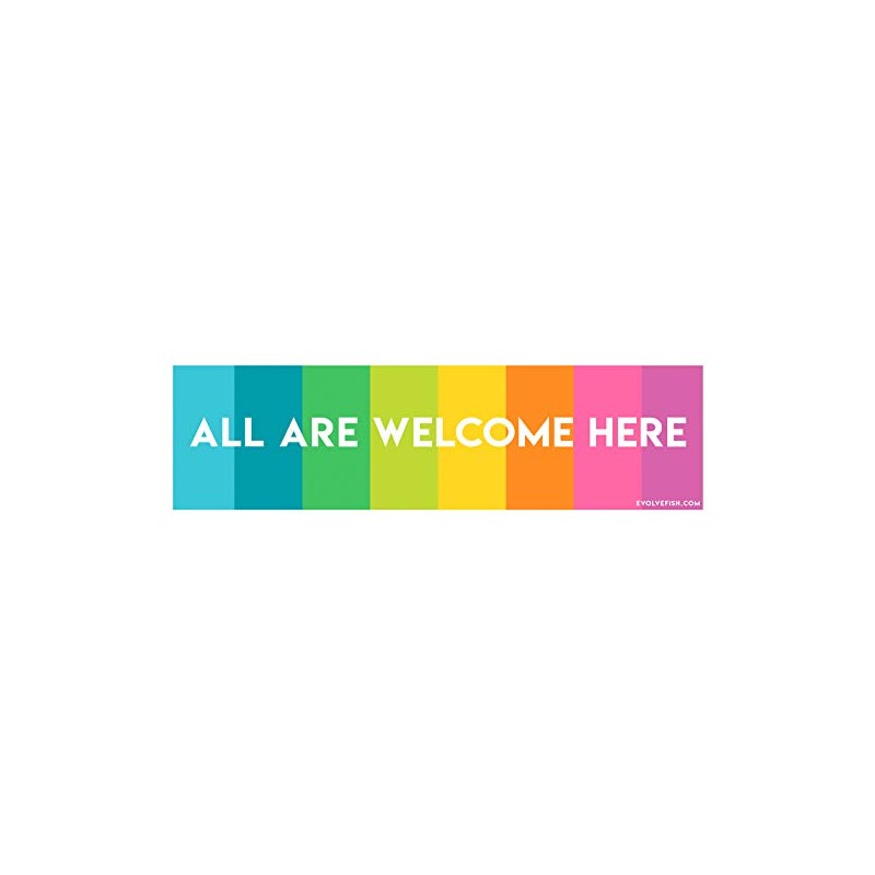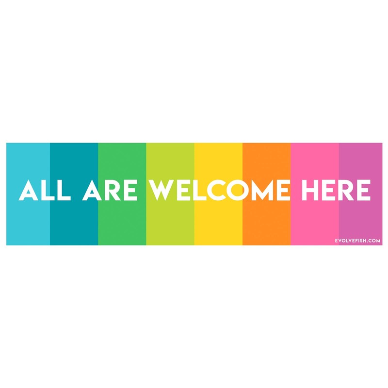 EvolveFISH All are Welcome Here Bumper Sticker - [11'' x 3'']