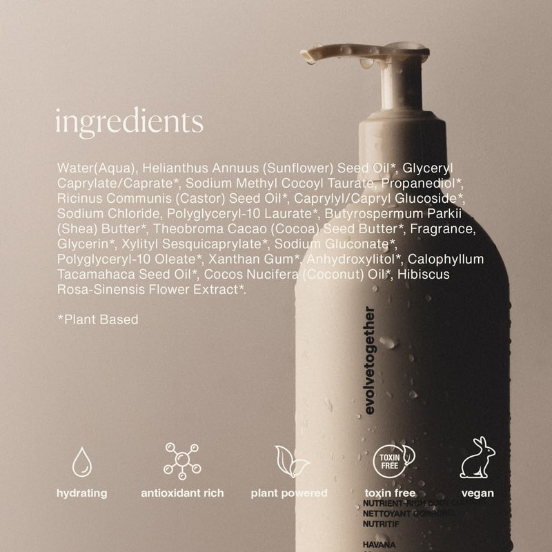 evolvetogether Nutrient-Rich Body Cleanser for Women & Men | Havana – Cardamom, Vetiver & Cedarwood | Cream-to-Oil Hydration, Gently Cleanses | Vegan, Cruelty-Free, Sulfate Free | (11.8 fl oz)