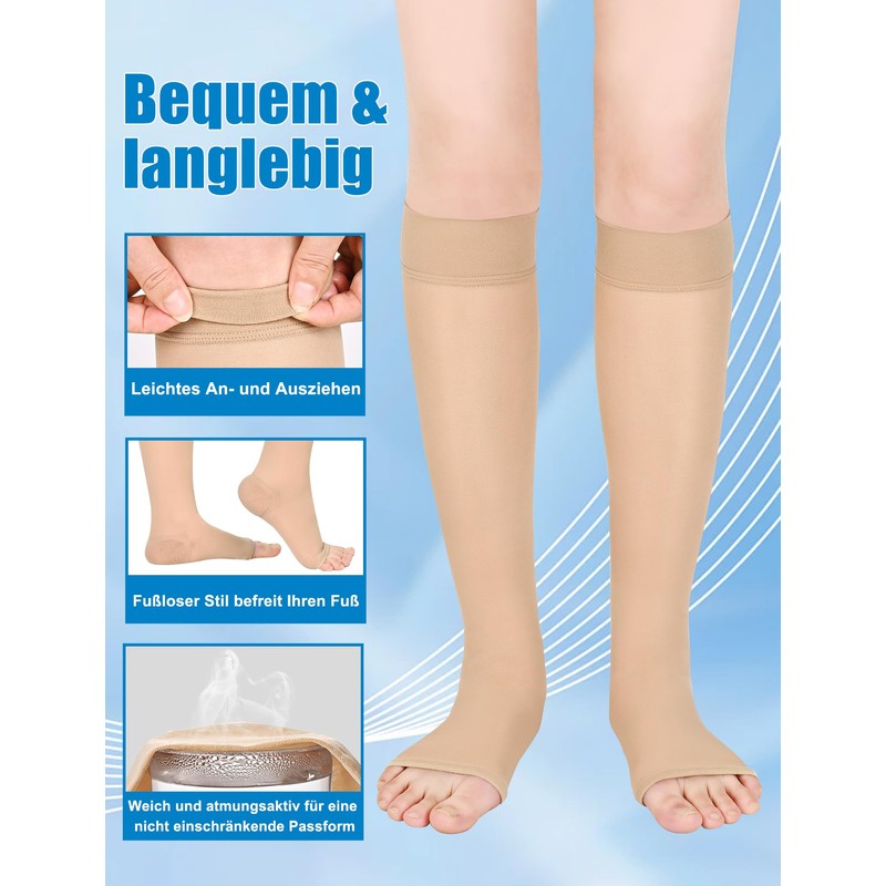 Evolyline Compression Stockings Women Men 18-22 mmHg Class 1, Calf Support Stockings, Compression Socks, Thrombosis Stockings, Graduated Support, Edema, Open Toe Beige, M