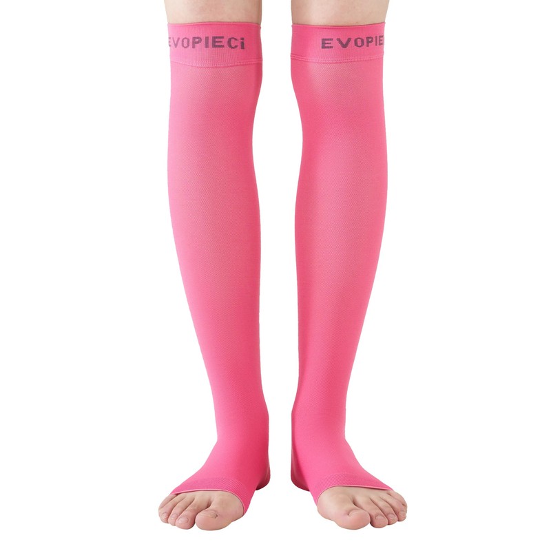 EVOPLECI Pink Open Toe Compression Socks 20-30mmHg Toeless Compression Socks for Reduce Swelling and Alleviates Varicose Veins