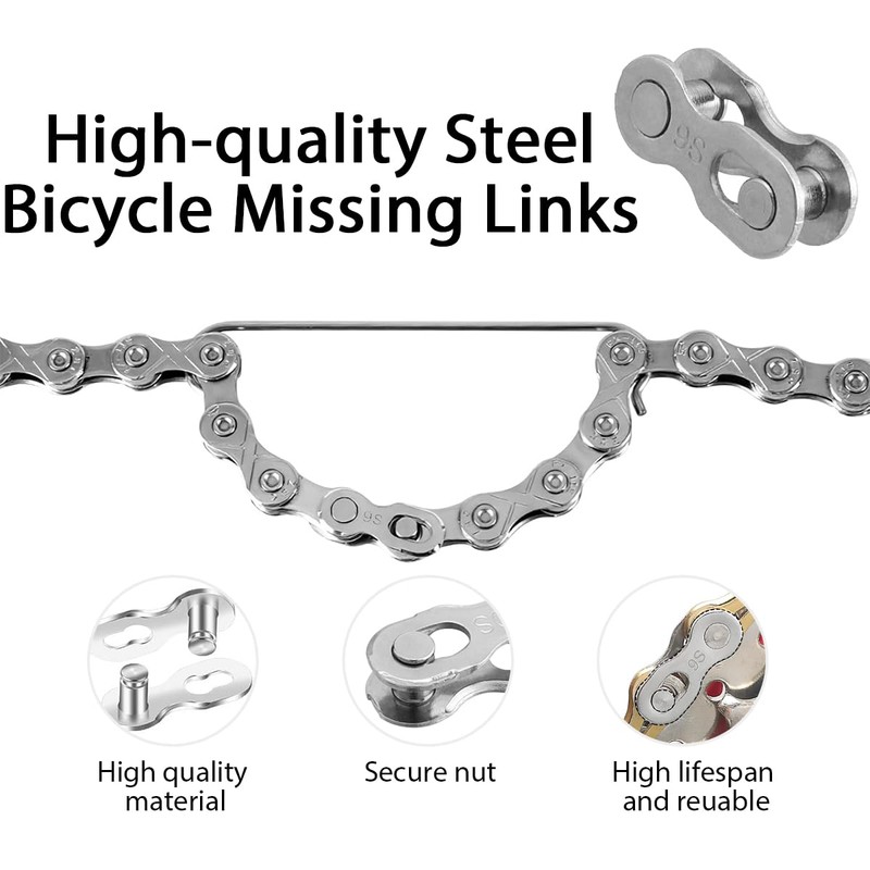Bicycle missing links are compatible with all 9-speed chains, easy to install and remove, can be used repeatedly, but it is recommended not to remove more than 5 times.