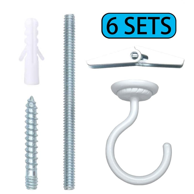 EVSTELUO 6 Sets Large Swag Ceiling Hooks Heavy Duty Swag Hook with Hardware for Hanging Plants Wind Chimes Light Fixtures Bed Netting etc. Ceiling Installation Cavity Wall Fixing (6 Sets White)